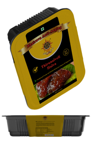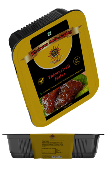 Halwa, an unparalleled dessert that just melts into your mouth. Thirunelveli ,is a small town in Tamilnadu, where they prepare this halwa. Their distinctive taste is achieved by the unique blend of wheat milk,pure ghee,cashews and sugar.They are traditionally served warm on the plaintain leaf which enhances its aroma and taste.This much sorted sweet is delivered to you with its authentic flavour and freshness by Bhairava antiageing.